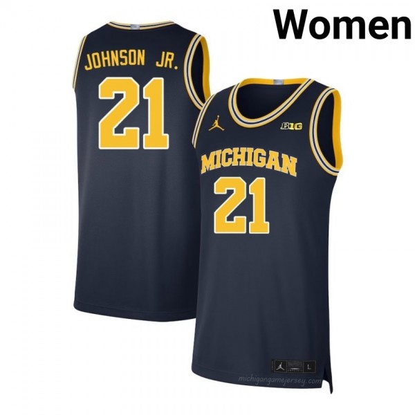 #21 Morez Johnson Jr. Michigan Wolverines Women's Jersey | Navy College Basketball Premium Stitching Team Gear 73910329